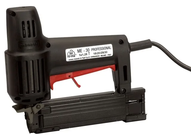 The Maestri ME30 is designed for precision fixing of scotia, quadrants, and other trim. Delivering up to 20 shots per minute, it features a slim 2mm countersunk nose for accurate nail placement, while rubberised feet protect work surfaces. Firing 18G brads from 15–30mm, it offers a reliable balance of speed, accuracy, and protection for finishing work.